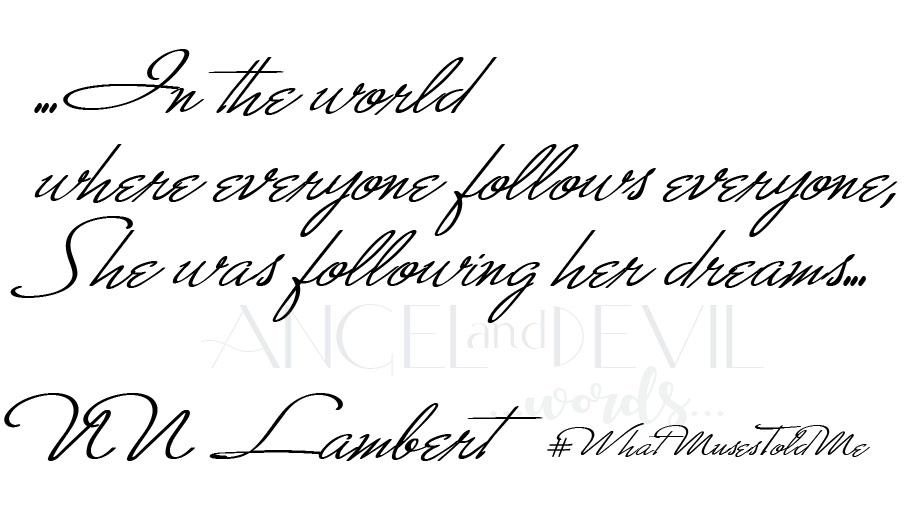 …In the world where everyone follows everyone, She was following her dreams… NN Lambert BTW: What do you follow? Comment below: